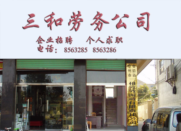 三和人力資源服務(wù)有限公司還在渦陽(yáng)蒙城利辛成立了分公司,還在古井鎮(zhèn)、亳州產(chǎn)業(yè)園區(qū)設(shè)立了辦事處,并和外省人力資源機(jī)構(gòu)建立了長(zhǎng)期友好合作關(guān)系。并對(duì)外輸送勞務(wù)人員,承包服務(wù)項(xiàng)目。
